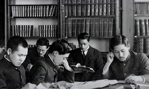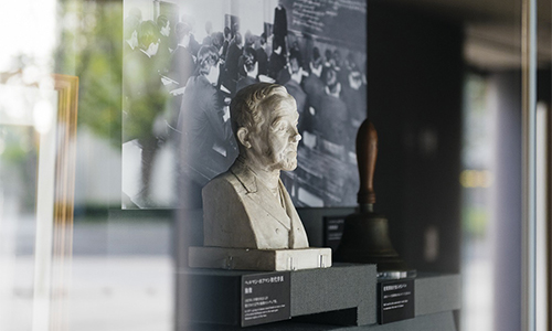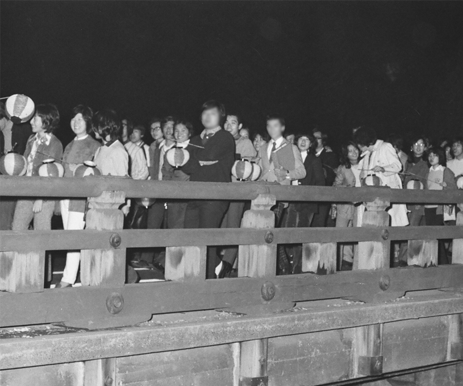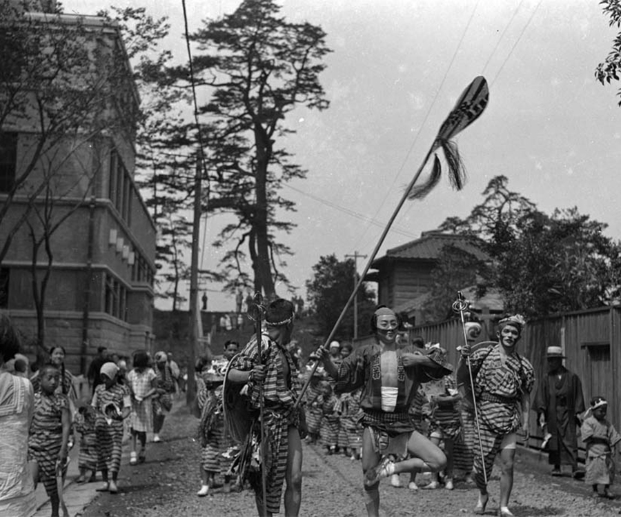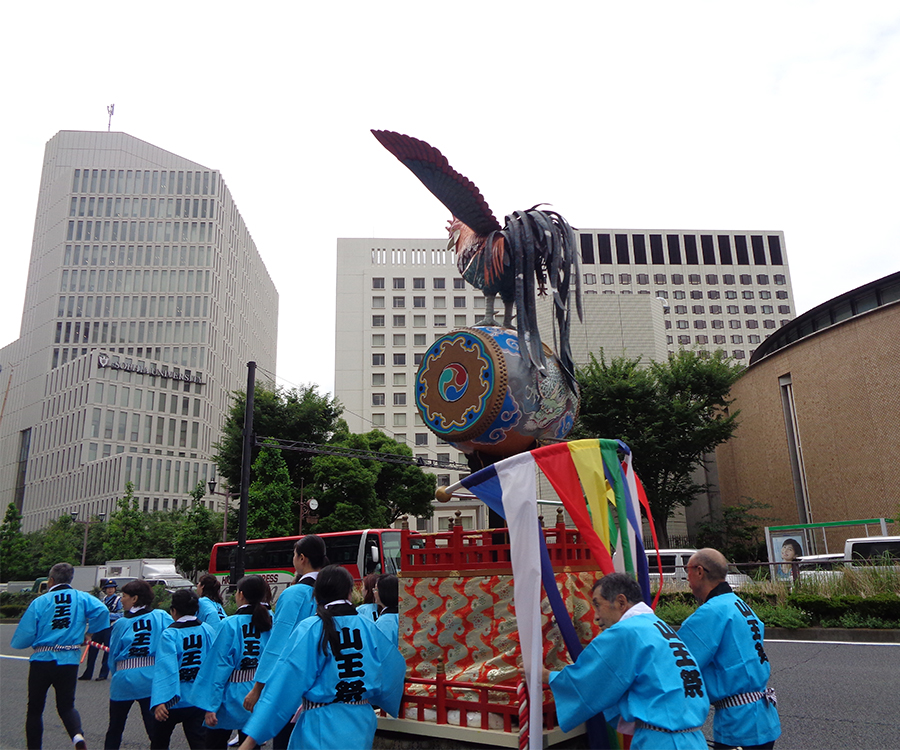 Viewing the floats of the Hie Shrine Sanno Festival with the university building in the background.
