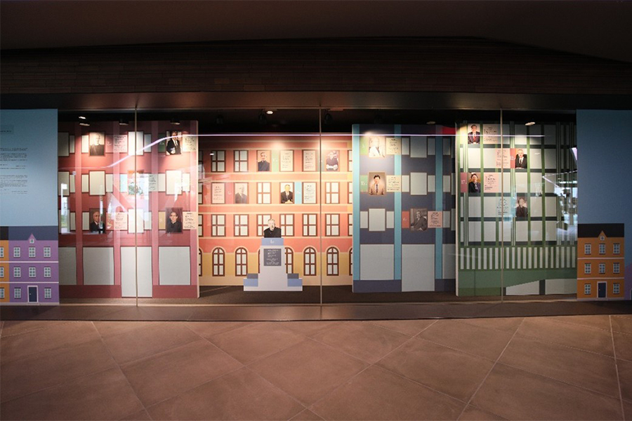 The Yakko (samurai attendants) parading along the road between building 1 and machiya (row houses).