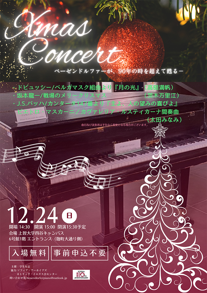 The Christmas Piano Concert, organized by student volunteers with our support, featured the Bösendorfer piano currently on display.